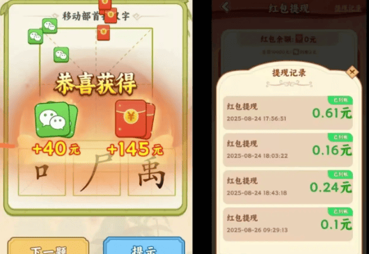 游戏的一个特点是提现按比例计算,刚开始比例较低,但坚持玩下去收益会更稳定。建议每次提现控制在10元以内,以确保快速到账。每天抽空玩几局,就能轻松达到80元的每日收益目标。这种结合教育的赚钱游戏,能让你收获更多价值。