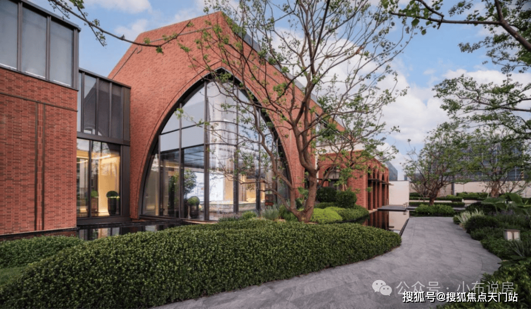 融入归家动线。▸三个亲水平台:乌桕、马鞭草簇拥的临水空间,6m高月亮门雕塑昼夜演绎光影诗篇。